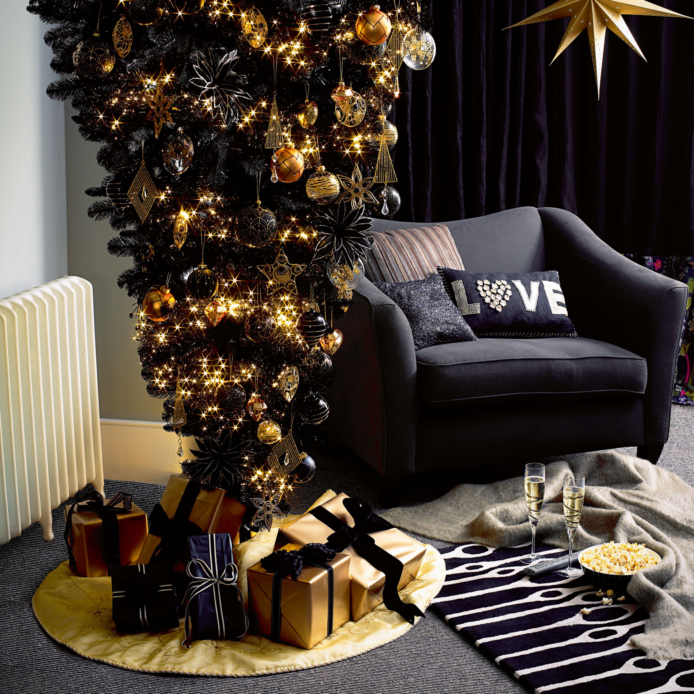 I didn't realise but these have been available since 2007. Upside down trees were put up in the middle ages to mimic the shape of the cross. They take up less floor space than a normal tree and can stop little children getting to decorations, so its more than just a quirky idea.